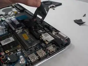 Отодвиньте ленточный кабель так, чтобы он больше не лежал поверх аккумулятора.