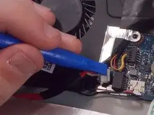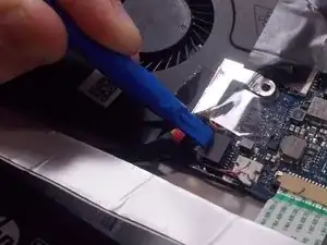 Используйте пластиковой лопаткой, чтобы отсоединить кабель аккумулятора.
