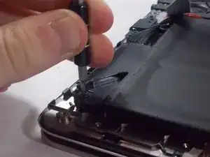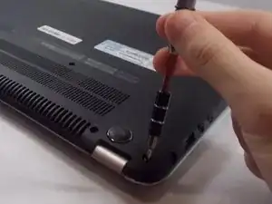 С помощью маленькой крестовой отвёртки размера 0 открутите двенадцать внешних винтов Phillips длиной 5,5 мм, крепящих заднюю панель к корпусу.