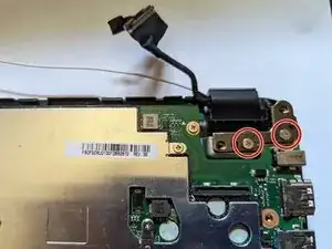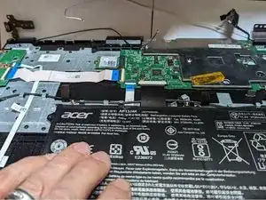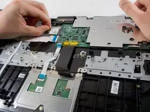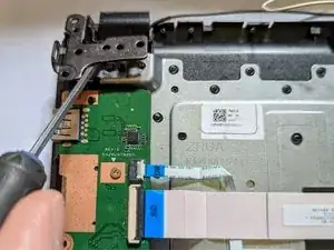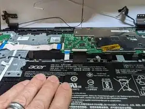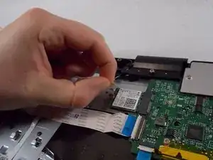 Потяните прямо вверх за конец кабеля дисплея, подключённого к материнской плате, чтобы отсоединить его.