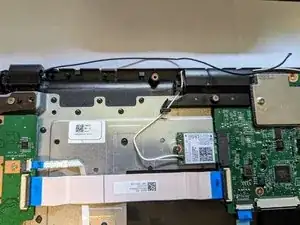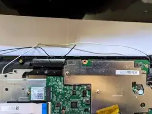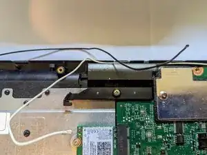Извлеките белый провод Wi-Fi из паза в нижней части клавиатуры.