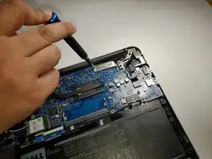 Удалите один винт длиной 3 мм с металлического кронштейна крестовой отверткой Phillips #0.