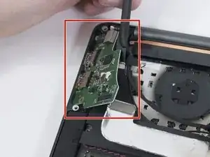 Используйте пластиковую лопатку, чтобы приподнять защёлкивающийся соединительный кабель и обнажить модуль USB-A и HDMI.