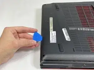 Используйте пластиковый инструмент iFixit, чтобы отщёлкнуть нижнюю крышку.