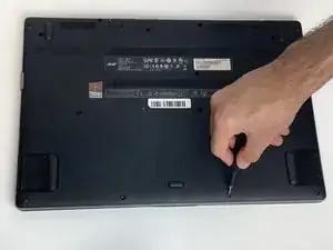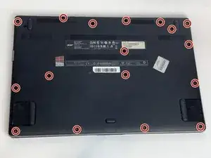 Удалите семнадцать винтов M2.5x8 мм на задней крышке ноутбука с помощью отвертки Phillips #00.