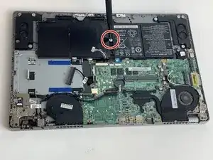 Батарея теперь отсоединена от ноутбука и может быть убрана в сторону.