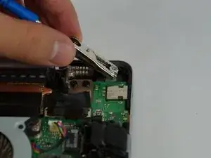 Используйте лопатку, чтобы зацепить между ноутбуком и нижней крышкой — поднимите вверх, чтобы открыть.