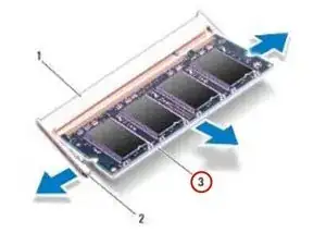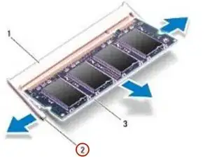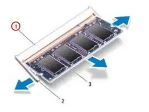 Сдвиньте защёлки на крышке модуля памяти из пазов на основании компьютера.