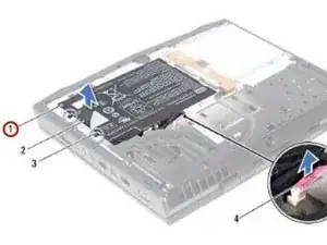 Отключите кабель аккумуляторного блока от разъёма на системной плате.