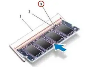 Выровняйте выемку в НОВОМ модуле памяти с выступом в разъёме модуля памяти.