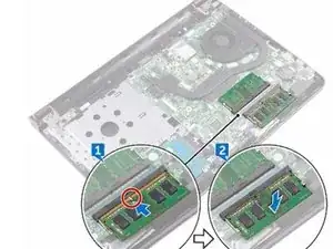 Вставьте НОВЫЙ модуль памяти под углом в слот и надавите на него вниз, пока он не защёлкнется на месте.