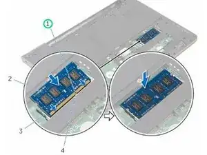 ПРИМЕЧАНИЕ: Если вы не услышите щелчок, извлеките модуль памяти и установите его заново.