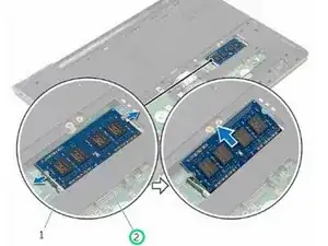 Сдвиньте и извлеките модуль памяти из слота для модуля памяти.
