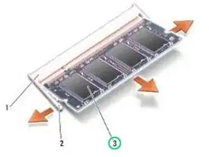 Используйте кончики пальцев, чтобы аккуратно разжать зажимы на каждом конце разъема модуля памяти, пока модуль не поднимется.