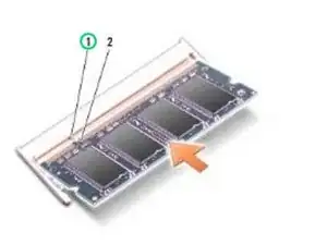 Совместите вырез на краю НОВОГО модуля памяти с язычком в разъеме модуля памяти.