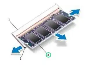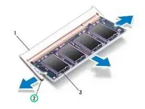 ОСТОРОЖНО: Чтобы предотвратить повреждение разъема модуля памяти, не используйте инструменты для раздвижения зажимов модуля памяти.