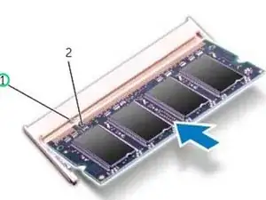 Совместите выемку на модуле памяти с выступом на разъеме модуля памяти.