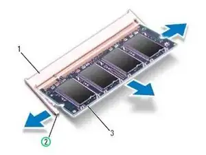 ОСТОРОЖНО: Чтобы предотвратить повреждение разъема модуля памяти, не используйте инструменты для раздвижения зажимов модуля памяти.