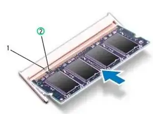 Совместите выемку в НОВОМ модуле памяти с выступом в разъеме модуля памяти.