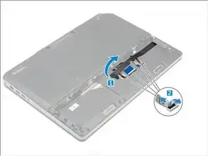 Снимите ленту, чтобы получить доступ к кабелю клавиатуры [1].