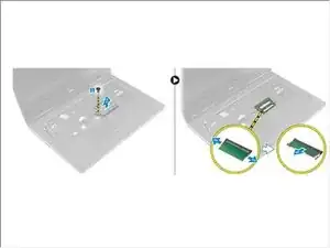 Удалите винт, который крепит защиту памяти к компьютеру [1].