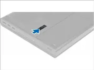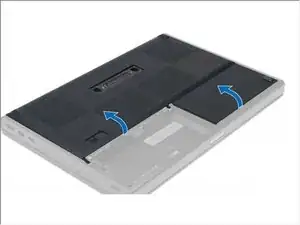 Сдвиньте фиксатор, чтобы разблокировать аккумулятор.