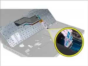 Отключите кабель данных клавиатуры от системной платы и снимите клавиатуру.