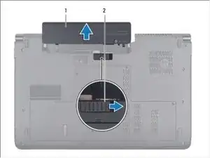 Сдвиньте защелку освобождения батареи до щелчка.