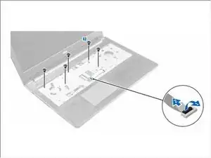 Сдвиньте и поднимите клавиатуру, чтобы получить доступ к кабелю соединителя клавиатуры под клавиатурой [1,2].