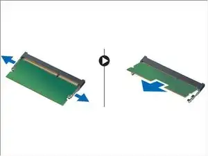 Отожмите защёлки, удерживающие модуль памяти, пока он не приподнимется.