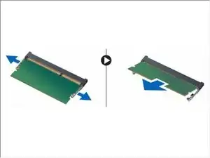 Отодвиньте фиксирующие защёлки от модуля памяти, пока он не отщёлкнется и не поднимется.