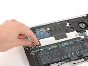 Если крышку трудно снять, слегка подогрейте её с помощью iOpener или фена. Будьте осторожны, чтобы не перегреть клейкую ленту или соседние компоненты.