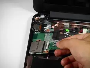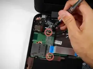 Удалите два винта Phillips #00 длиной 6 мм, которыми модуль прикручен к ноутбуку.