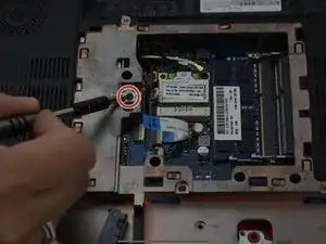 Снимите заднюю панель с ноутбука, убедитесь, что отключили все провода, подключенные к ней.
