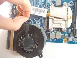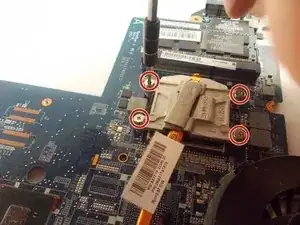 Удалите два винта материнской платы и винт вентилятора, который удерживает его на остальной части компьютера, с помощью отвертки Phillips #1.