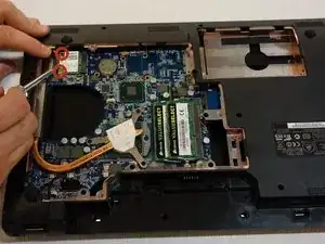 С помощью отвертки Philips #1 открутите два винта, крепящих модуль Wi-Fi.