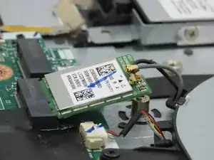 Вставьте новый модуль Wi-Fi под тем же углом и зафиксируйте его в разъёме.