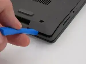 После удаления всех десяти винтов используйте пластиковую лопатку, чтобы отделить нижнюю крышку от ноутбука.
