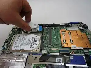 Снимите нижнюю крышку ноутбука, аккуратно поддев шов пластиковой лопаткой для разборки.