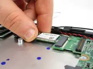 Используйте крестовую отвертку Phillips #00, чтобы выкрутить винт, фиксирующий модуль Wi‑Fi.
