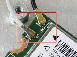 Отсоедините оба — чёрный и белый — провода от модуля Wi‑Fi.