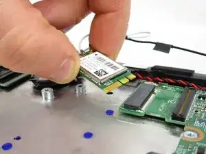 Чтобы извлечь модуль Wi‑Fi с материнской платы, сдвиньте его, освободив из разъёма.