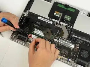 Выверните один винт 1 мм слева от модуля Wi‑Fi с помощью отвертки Phillips #0.