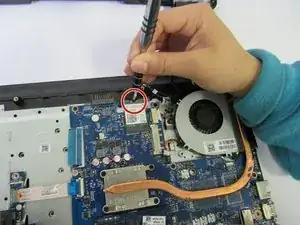 Используйте крестовую отвертку, чтобы открутить винт, удерживающий модуль wifi.