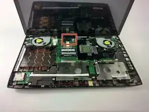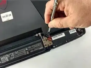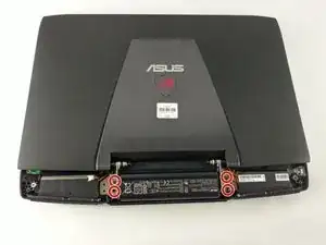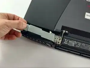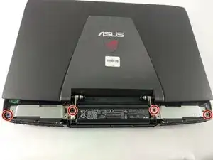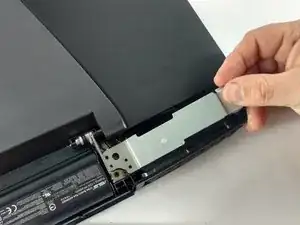 Снимите металлические кожухи с ноутбука, чтобы открыть по два дополнительных винта с каждой стороны ноутбука.