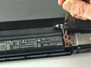 Удалите винт Phillips #00 длиной 5,3 мм, фиксирующий крышку доступа к оперативной памяти.
