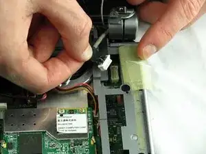 Отключите клавиатуру, аккуратно потянув за жёсткий пластиковый квадратик прямо вверх от белого разъёма.