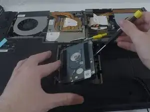 Снимите жёсткий диск, сдвинув его в вашу сторону.