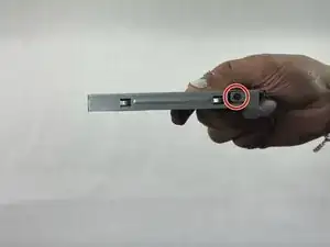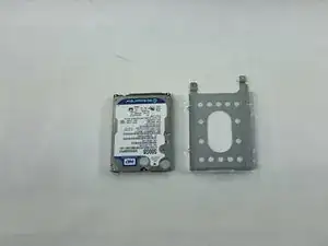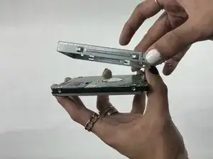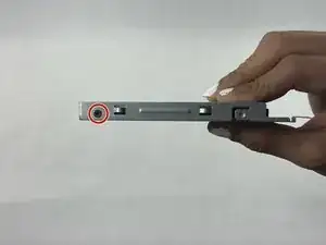 С помощью крестовой отвертки Phillips #0 удалите два винта 2 мм (по одному с каждой стороны), закрепляющие жёсткий диск в корзине.