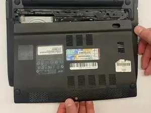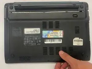 Чтобы открыть нижний отсек, положите один палец под ноутбук и крепко держите отсек большим пальцем.